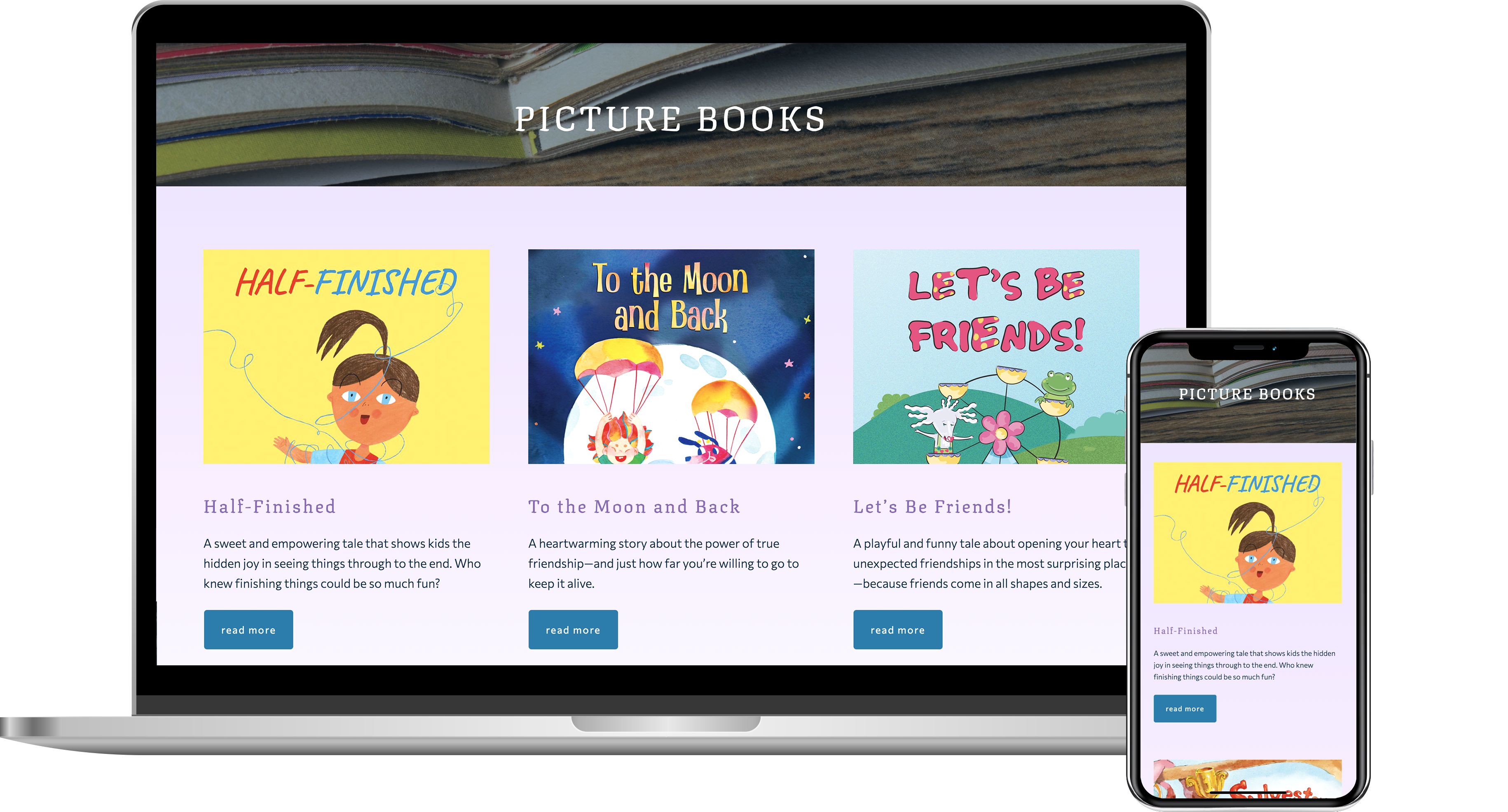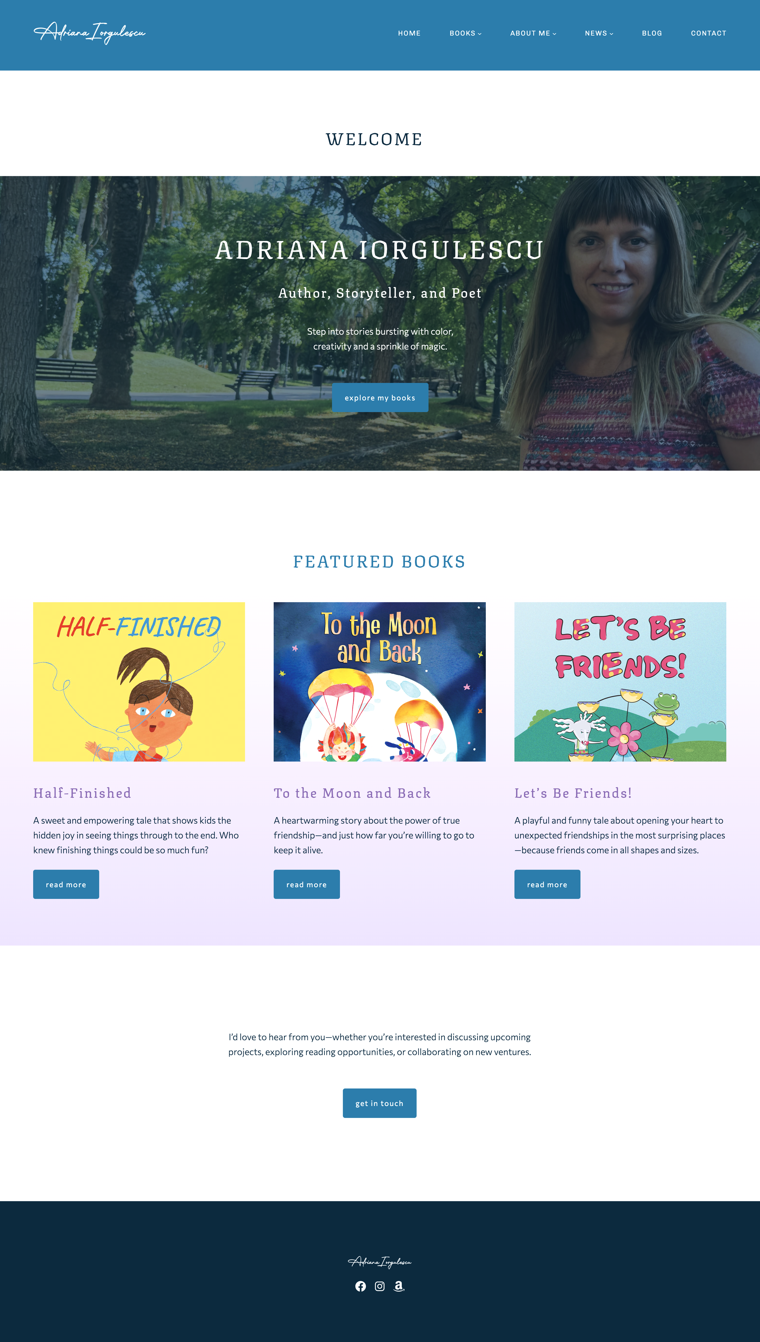 I designed this elegant website for an author that puts her books center stage. It’s clean, simple, with navigation that’s super easy to follow—plus just a splash of personality in the accent color. The homepage highlights her latest work right away. It’s polished, no-fuss, and totally reader-friendly.