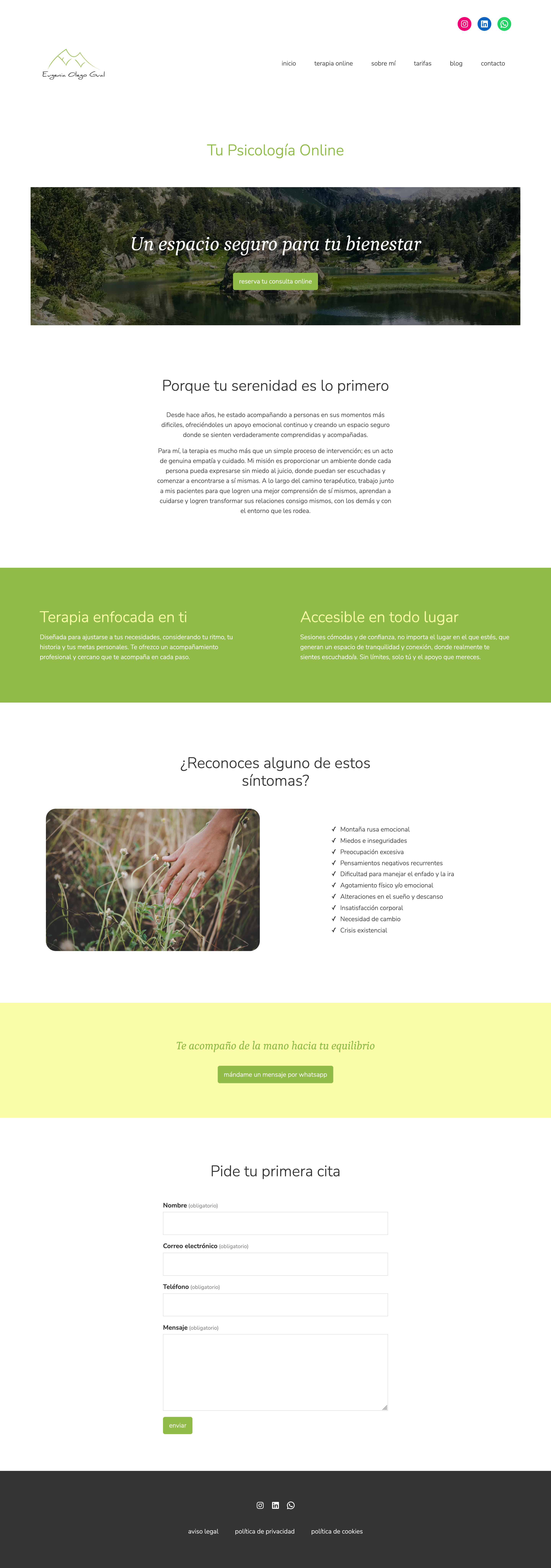 I designed this website for a psychologist who sought to create a calm and welcoming atmosphere, reflecting the peaceful essence of her practice through nature-inspired colours and imagery.